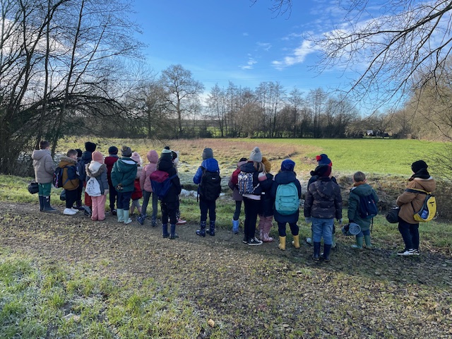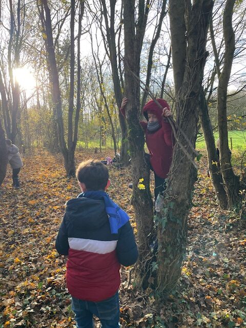 Les enfants de cycle 2C vont en école dehors. Ils vont à côté du plan d’eau, dans un petit bois. Ils font des activités : ils travaillent sur la nature ; sur les arbres ; sur l’eau (la glace) ; l’étude du sujet et du verbe et la phrase ; les oiseaux. Ils observent aussi la nature, ils grimpent dans les arbres, ils construisent des cabanes, ils courent dans les feuilles, ils cherchent du bois et ils font un temps calme avec les arbres en écoutant un texte que la maîtresse leur lit. Enfin, ils font des maths. Ils aiment la récréation, le silence on écoute des histoires, le temps calme avec leur arbre mais aussi appendre des choses sur la nature et écouter et voir les oiseaux. Ils restent tout le mardi après-midi en école dehors.