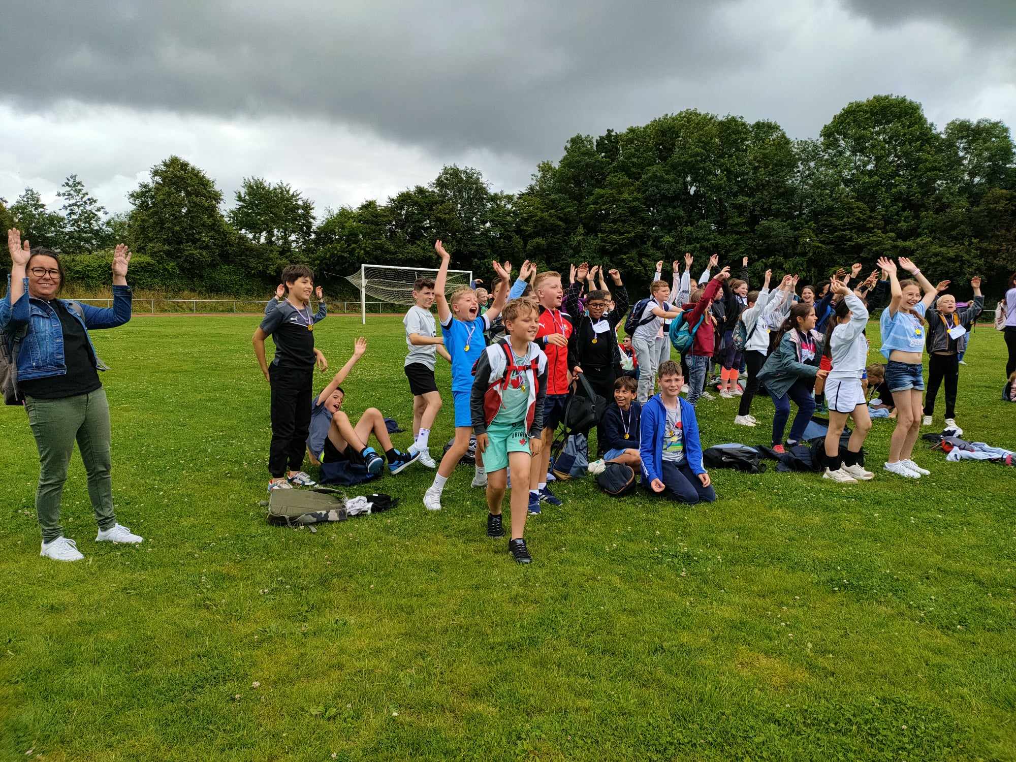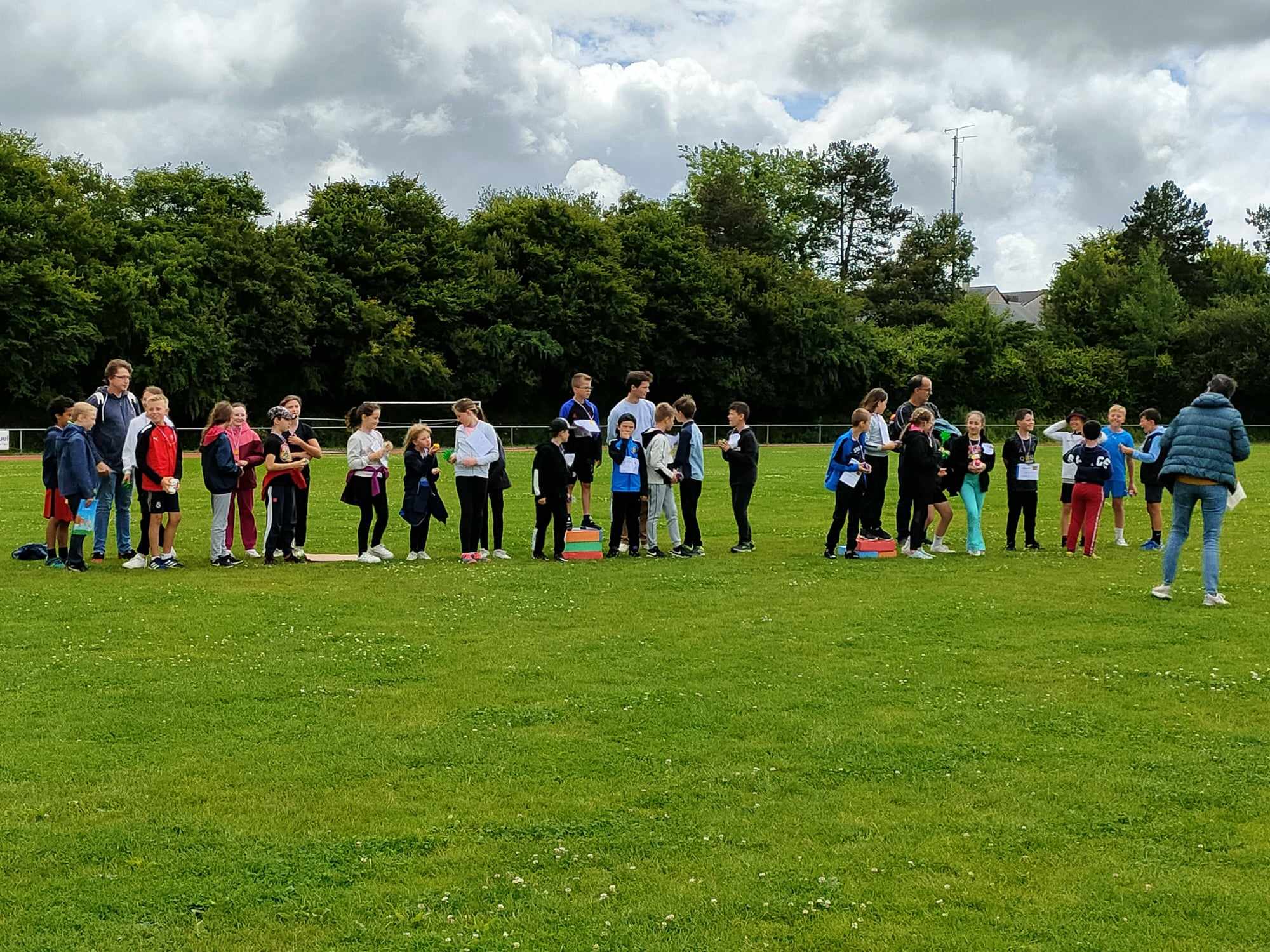 Les élèves de cycle 1 se sont tous réunis à l’école. Quant aux cycle 2 et 3, ils étaient au stade de St Pierre la Cour.