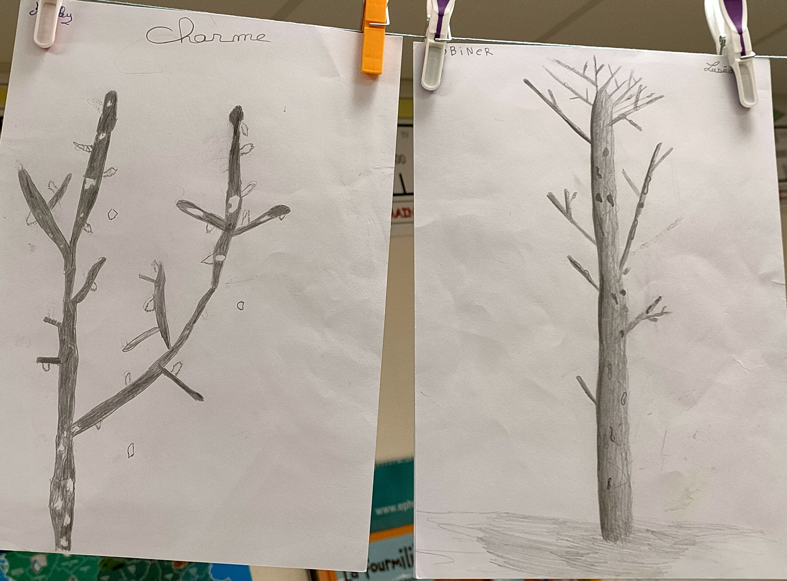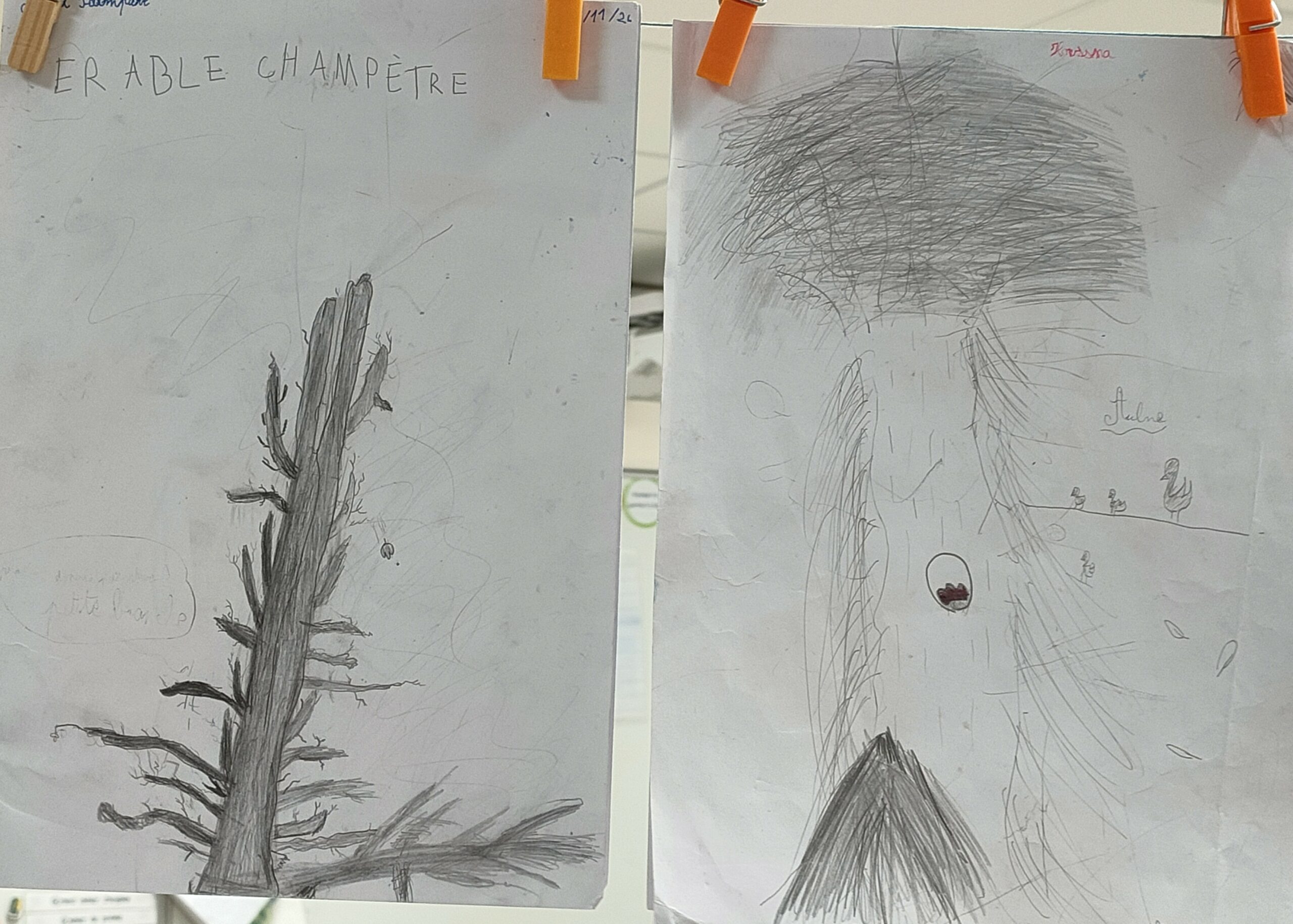 Lors des séances d’école dehors cet arbre était le support d’une production d’écrit puis d’un croquis (fin d’automne, début d’hiver).
